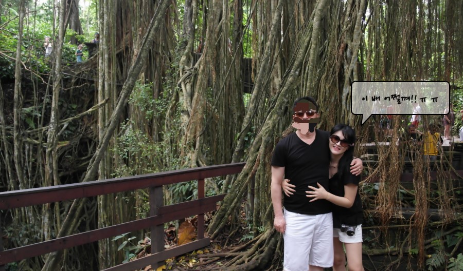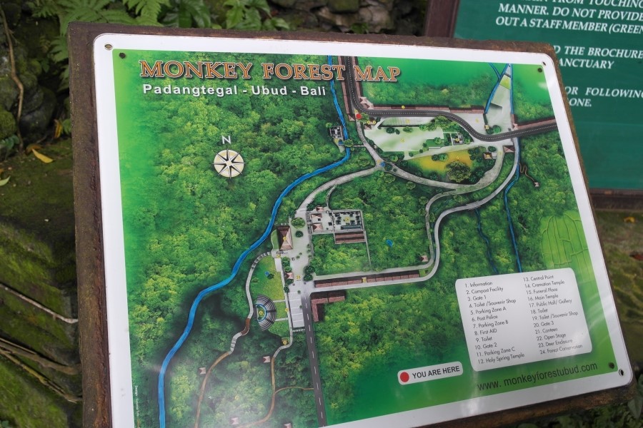 참 열심히 연기하시는 모습에 짝짝짝 박수를!!!^^* 단독 사진찍기에는 무리라 꼽사리껴서 한장 찍고 왔네여~~~^^* 바롱댄스를 다~~~보고~ 와얀이 기다리는 곳으로 갓어요~40분정도 관람했던것 같아요~~~~ 그래도 다음 시간대에 바롱댄스를 보러 오신분들도 완전 많더라구요~~~~ 자~~~그리고 다음 장소로 이동!!!!!!! 발리가 그렇게 덥지 않아서 좋았어요~ 필리핀은 습도가 넘 높아서 조금만 돌아다녀도 팔다리 근적끈적~ 그래서 넘 씨른데 발리는 돌아다닐만 햇지요^^* 자~~~발리여행 둘째날 우리가 바롱댄스로 보고 간곳은 바로~~~~ 우붓이예여!!!!!!! 우붓은 우리 리조트에서 한 4,50분은 걸린듯???? 발리여행 둘째날은 우붓관광을 하기로 햇지요~~~ 이곳은 원숭이 사원!!!!!!! 우붓인기 관광코스중 한곳이라고 하는데요~~~ 1인 3만루피아~~~~우리돈으로 3천원~~~~ 와얀도 함께 동행했어요~~~ 몽키 포레스트 맵~~~~우리말로 원숭이 숲 지도!!ㅋㅋㅋㅋㅋㅋ 이런거 필요없고 그냥 사람들 댕기는데 따라댕기면 끝!!!^^* 단 원숭이 사원은 커플로 여행을 가든~~~가족과 여행을 가든~~~ 정말 곡꼭 가라고 추천하고 싶어요!!!!!!!! 특히 애들있는 관광객들은 절대 강추하는곳입니다!!!!! 저도 넘넘 즐거웠거등요~~~^^*