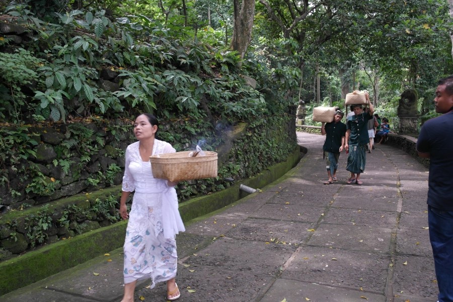 지나가면 원숭이들이 그냥 바닥에 앉아서 옥수수도 먹고잇고~~~~ 사람들이 주는 바나나도 먹고잇는데 진짜 사람같이 먹는모습이 완전 웃기드라구요~~~ ㅎㅎㅎㅎㅎ저렇게 줬는데... 또 달라고 오는거예여~ㅋㅋㅋㅋㅋ 없다고~~~없다고~~~햇는데도 제손에 하나 쥐어 있는걸 봤는지 자꾸 달라고~~하면서~ㅋㅋㅋㅋ 그래서 줬더니 알맹이만 쏘옥~~~빼가지고는 입에물고 튀었네여~ㅋㅋㅋㅋ영특한넘!!!ㅋㅋㅋㅋㅋ 이렇게 와얀과 함께 걸어가봅니다.... 신들께 바칠 재물을 가지고 가는것 같은데.... 발리에서는 흔하게 볼수잇는 모습이지요..^^*